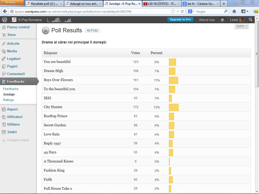 2. Boys Over Flowers -> 161 de voturi (11%)
