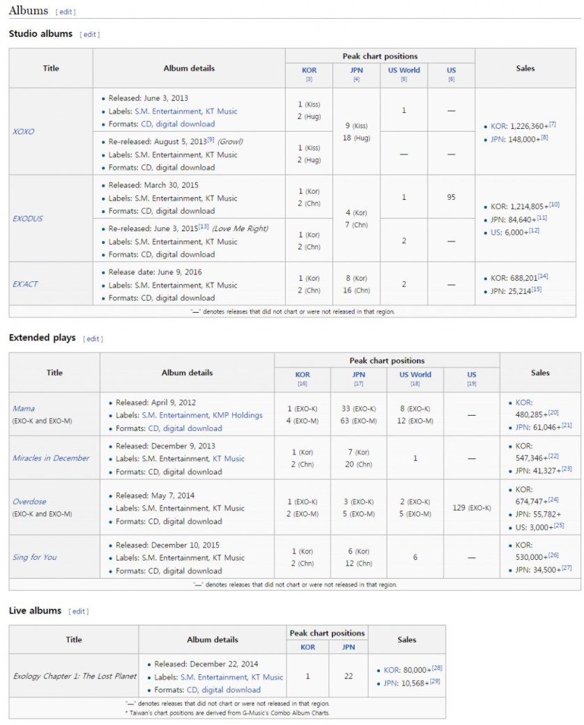 [+69, -3] Ceva surprinzător: sunt aproape toate de la SM, EXO sunt pe locul trei când au abia 5 ani de al debut şi vânzările TVXQ.