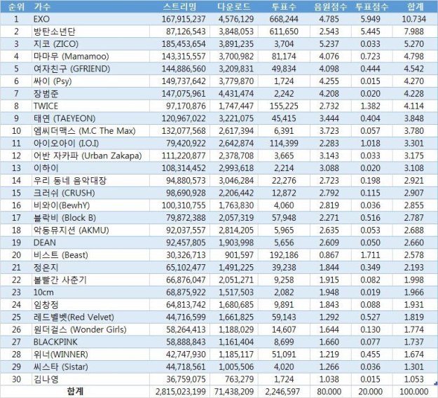 Pe lângă asta, criteriul de acordare a premiului pentru Artistul Anului şi Albumul Anului sunt la fel. Deci, în urma acestor date, mulţi se întreabă cum EXO au primit premiul pentru Artistul Anului, dar nu şi pentru Albumul Anului?