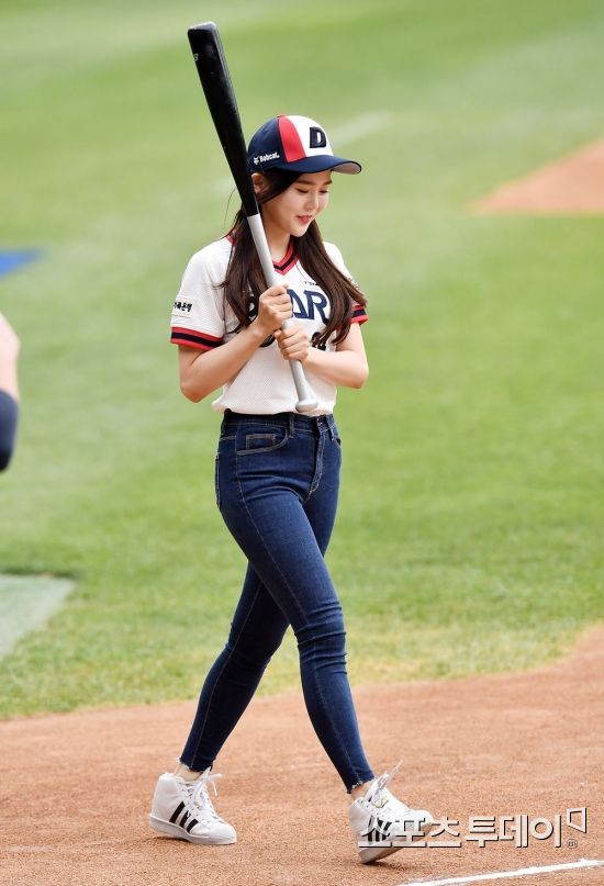 Hyojung și Binnie din Oh My Girl au participat la meciul dintre Doosan vs Samsung.