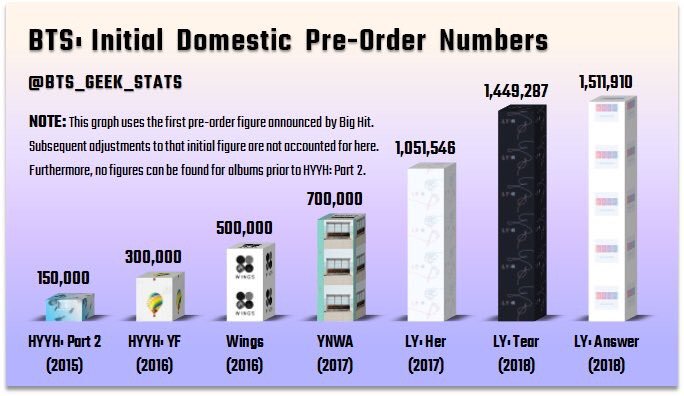 La scurtă vreme de la publicarea acestor informații pe internet au apărut și statistici cu pre-comenzile înregistrate de albumele lansate anterior de BTS. Rezultatele arată cam în felul următor: