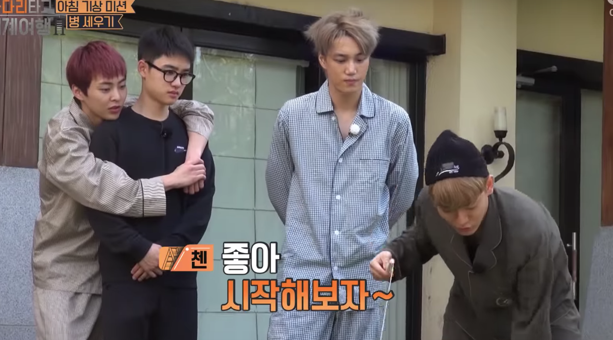 În cel mai recent episod al show-ului ‘Travel the World on EXO’s Ladder‘, băieții au avut de îndeplinit o misiune dis-de-dimineață și, din acest motiv, au apărut chiar în pijamele în care dorm și fără machiaj.