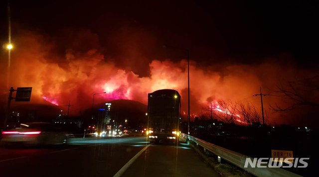 Potrivit Centrului de Incendiu din orașul Gangwon, focul a izbucnit pe un drum în Goseong, la ora 19:17 și s-a răspândit pe un munte din apropiere, ceea ce a dus la evacuarea locuitorilor și oaspeților unui complex din apropiere. Agenția Națională a Pompierilor a declarat că a emis cel mai înalt nivel de alertă – nivelul trei – începând cu ora 21:44.