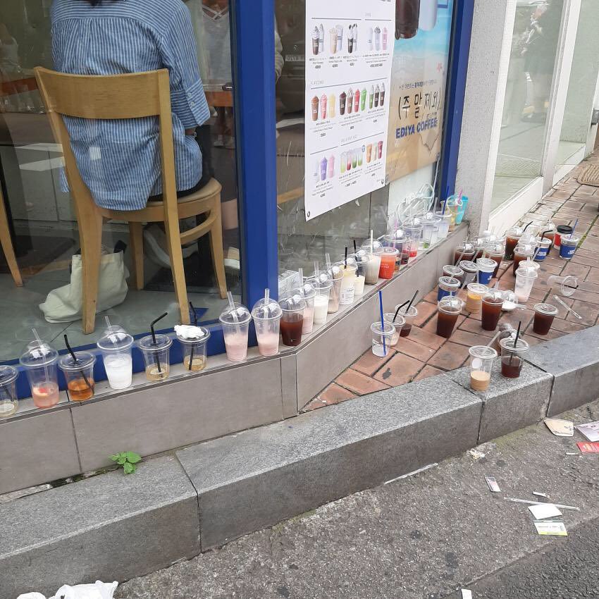 Angajații care lucrau cu jumătate de normă la cafenea au trebuit să plece din mijlocul turii lor pentru a strânge gunoiul de afară. Sute de pahare s-au strâns, blocând astfel intrarea în cafenea. O parte dintre fanii ARMY i-au rugat să se abțină din a mai arunca, dar este dificil de a-i controla pe toți