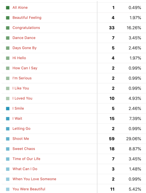 Începem cu opțiunea „Other” unde am avut variante precum „Rescue Me„, „I Need Somebody” (genială piesă), „I Would” și melodii care deja erau în sondaj. Cât privește topul propriu-zis, acesta arată cam așa: